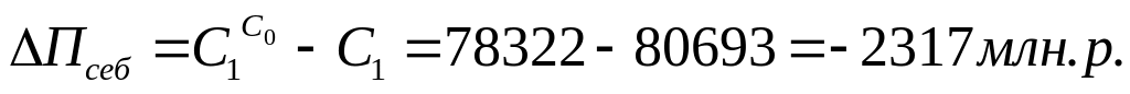 ∆(С ОБ., СТР./ТП) = (ΣVФ*С’ПЛ)/(ΣVФ*ЦПЛ) - (ΣVПЛ*С’ПЛ)/(ΣVПЛ*ЦПЛ)=740/1180 – 745/1138 = –0,028 р/р влияние положительное