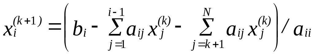Очевидным недостатком схемы (2.3) – (2.4) является то, что при нахождении компонента xi(k+1) никак не используется информация о уже пересчитанных компонентах x1(k+1),…, xi-1(k+1). Исправить этот недостаток можно, переписав (2.4) в виде