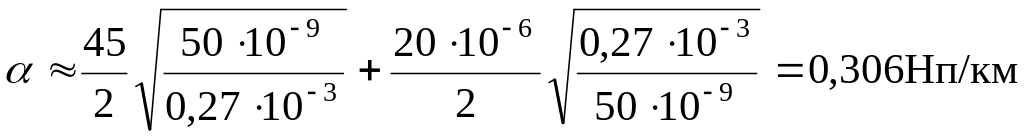 Задача 1.3. Первичные параметры линии на частоте 1 МГц имеют следующие значения: R0=45Ом\км; L0 = 0,27 мГн/км, C0 = 50 нФ/км, G0 = 20 мкСм/км. Рассчитать на данной частоте коэффициенты ослабления и фазы.