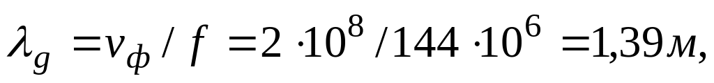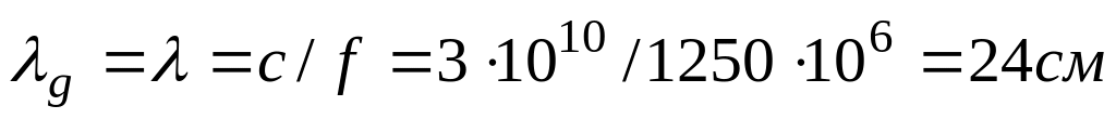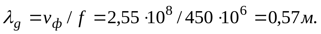 vф = 3·108 м/с и λg = vф /ƒ = 3·108/920·106 = 0,326 м,