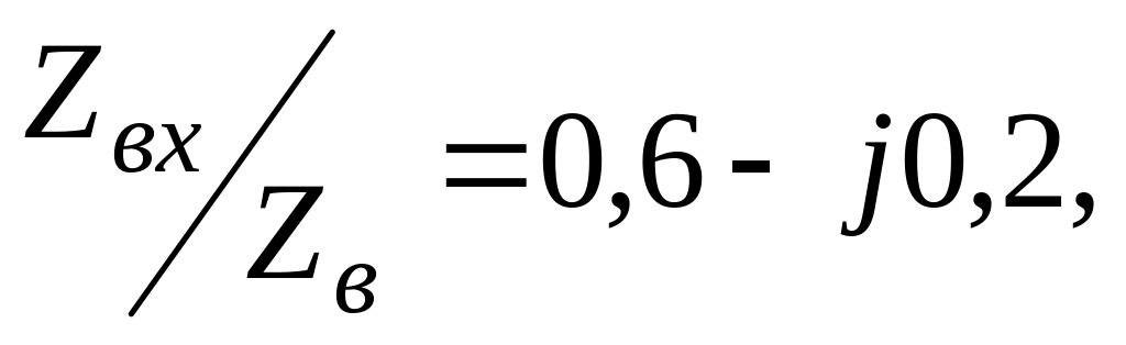 3. Следовательно, четвертьволновый трансформатор уже не будет нагружен на чисто активное сопротивление, а его собственная электрическая длина при увеличении частоты также возрастает приблизительно на 10% и станет равной 0,275. Оценим влияние такого изменения электрической длины четвертьволнового трансформатора и изменившейся нагрузки. Поскольку волновое сопротивление трансформатора отличается от волнового сопротивления отрезка длиной l, то нормируем входное сопротивление отрезка ZВХ1 к волновому сопротивлению трансформатора
