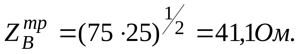 то волновое сопротивление четвертьволнового трансформатора должно быть