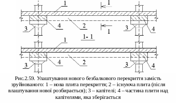 Збірні безбалкові перекриття підсилюються аналогічно монолітним.