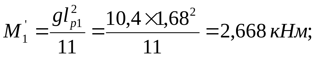 Згинальні моменти розділимо пропорційно жорсткостям: