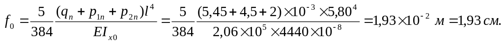 Визначаємо прогин балки від дії експлуатаційних навантажень: