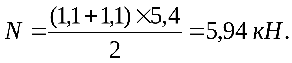 Розрахункове значення поздовжньої сили в стояку під час вивішування балки дорівнює (без урахування тимчасового навантаження та після заміни утеплювача):