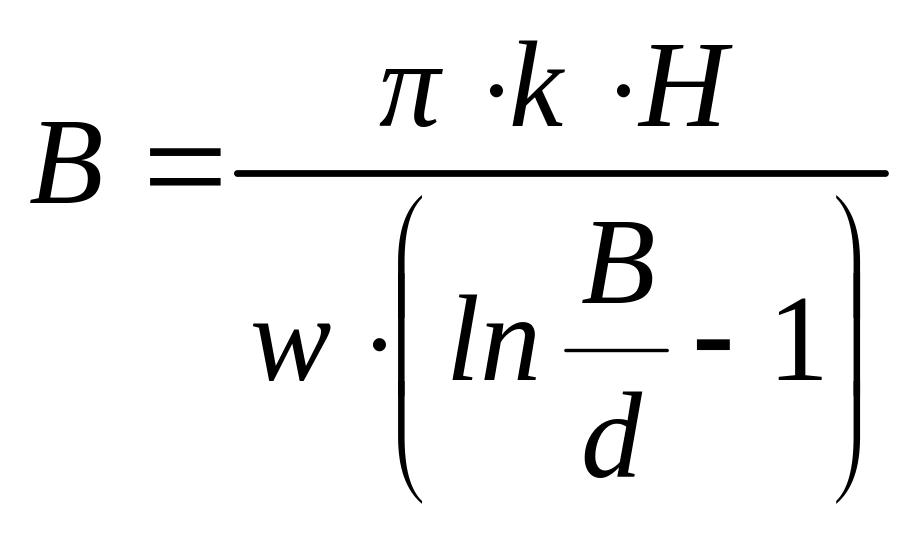 Якщо прийняти криву депресії у вигляді параболи, то середню між дренами глибину ґрунтових вод розраховують за формулою