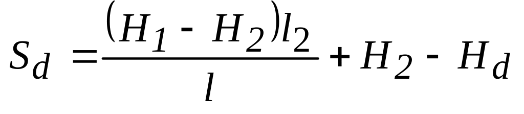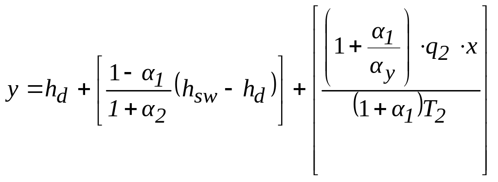 Рис. 19.8. Схема для розрахунку берегових дрен, розташованих між строго фіксованими рівнями.