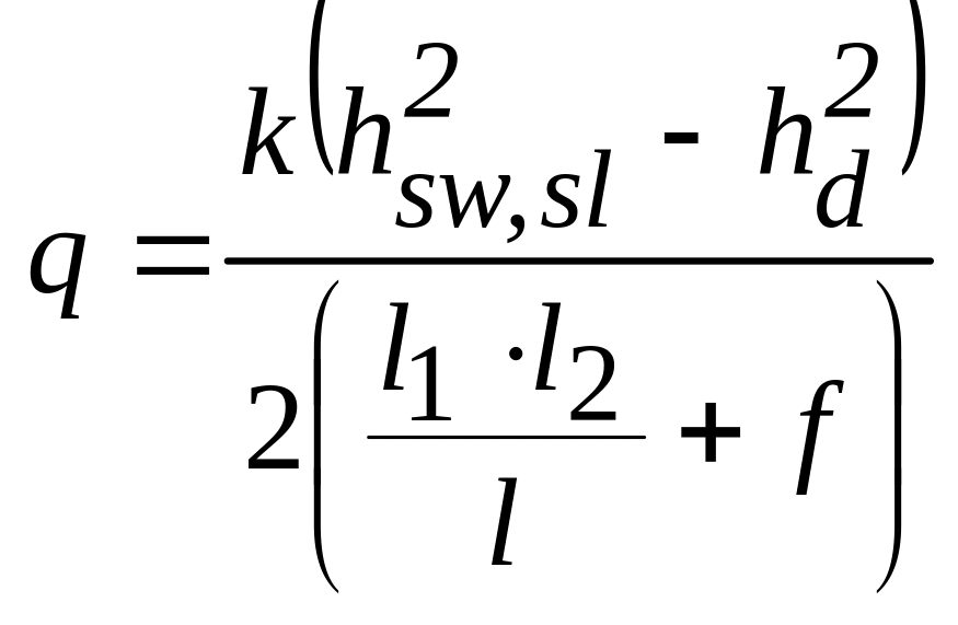 б) при недосконалих границях живлення (водойми, широкі канали) притік до дрени знаходять за формулою