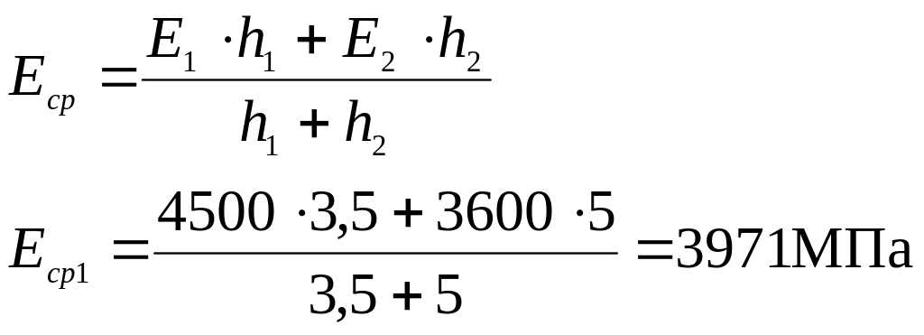 Средний модуль упругости двухслойного асфальтобетона определяется по формуле