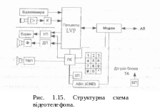 Відеотелефон являє собою стандартний телефон, що оснащений пристроями для здійснення відеозв'язку. Підготувати його до роботи і керувати їм не складніше, ніж звичайним телефоном. Для відеозв'язку необхідно, щоб в обох співрозмовників були відеотелефони, інакше власнику відеотелефону прийдеться задовольнятися тільки звуковим зв'язком і своїм зображенням на екрані апарата. Для переходу у відеорежим необхідно натиснути кнопку клавіатури відеотелефону, через кілька секунд з'явиться зображення співрозмовника, і ви зможете продовжити бесіду на більш високому рівні. Процес здійснення відеозв'язку нескладний. Ваше зображення приймається вбудованою відеокамерою і перетворюється в цифровий код. У цей час за допомогою кодера (К) оцифровується звуковий сигнал. Далі отримані дані стискуються процесором за спеціальними алгоритмами. Стиснуті дані передаються у вбудований модем для розбивки на пакети, перетворення в аналогову форму і передачі по телефонній мережі. Другий відеотелефон приймає дані, розпаковує і перетворює їх для передачі на екран і гучномовець. До переваг відеотелефонів, які працюють на звичайних телефонних лініях, варто віднести низьку абонентську плату (Ви платите як за звичайний телефон). Крім відеозв'язку, відеотелефони доповнюються зручностями стандартної телефонії -цифровим автовідповідачем і записною книжкою на сто абонентів. Незабаром автовідповідач буде включати функцію запису відеозображення, а також з'явиться можливість віддаленого керування відеокамерою. Одним словом, є вагомі підстави вважати, що відеотелефон об'єднає в собі всі можливості звичайного телефону і відео та незабаром одержить широке поширення як засіб підвищення інформованості й проведення розмов по телефону на рівні, близькому до реального.