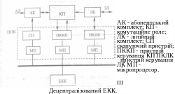 Таким чином, відмінними рисами децентралізованого ЕКК є керування процесом встановлення кожного з'єднання декількома пристроями керування за допомогою МП. Прикладами децентралізованого ЕКК служать пристрої керування ЕАТС ДХ-200 і МТ-20/25.