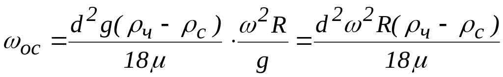 При ламинарном режиме осаждения в центробежных устройствах скорость осаждения определяют по уравнению Стокса с учетом фактора разделения , т.е.