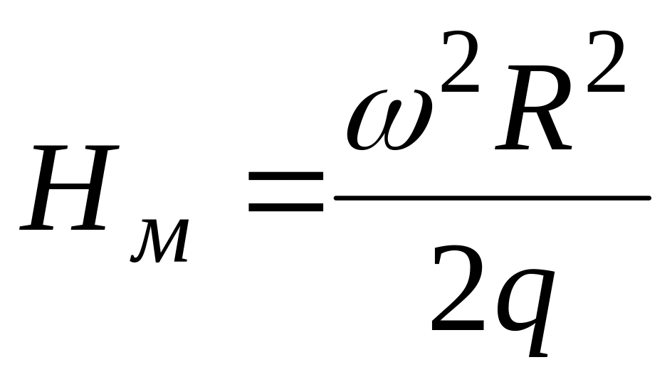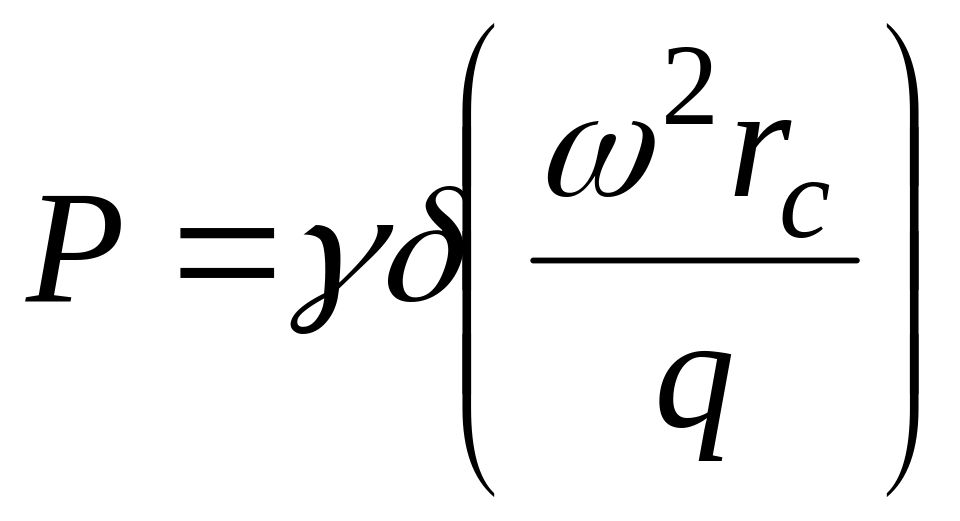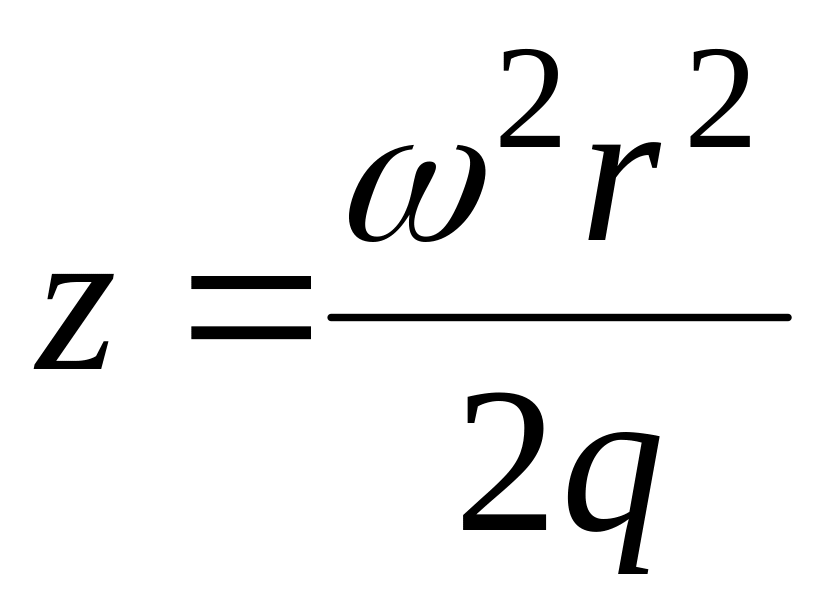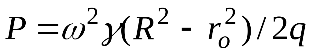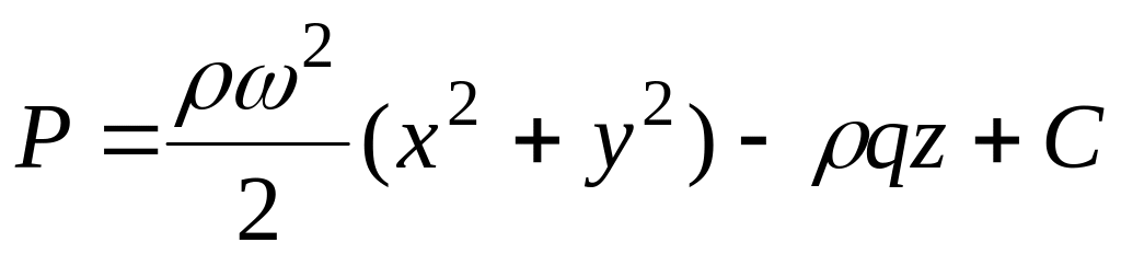 Постоянную интегрирования найдем из условия, что при x=y=z=0 избыточное давление на поверхности жидкости равно нулю, следовательно и С = 0. Заменив текущие координаты х и у переменным радиусом вращения r по формуле