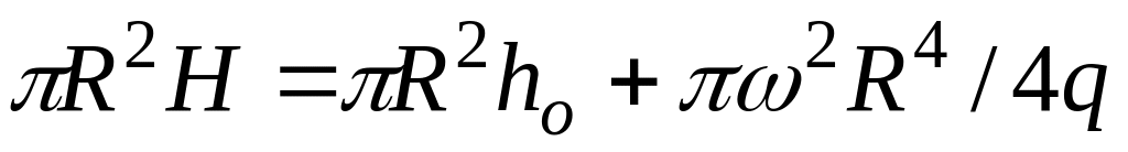 должен быть равен сумме объемов жидкости и пустого параболоида