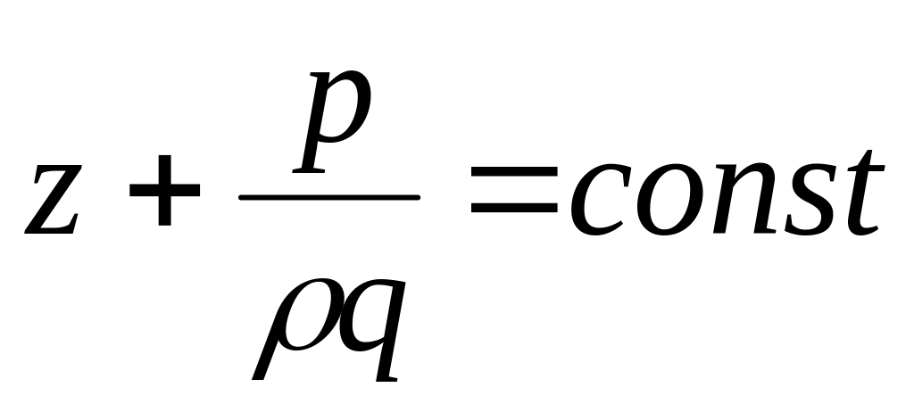 Следовательно, согласно основному уравнению гидростатики, для каждой точки покоящейся жидкости сумма нивелирной высоты и пьезометрического напора есть величина постоянная.