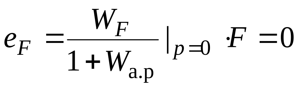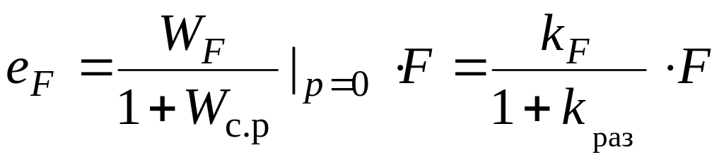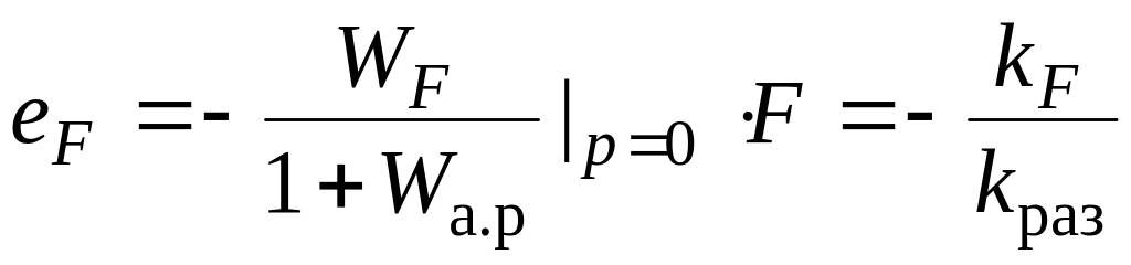 В статических режимах точность оценивают статическими ошибками по управляющему еу и возмущающему еF воздействиям, которые находятся по передаточным функциям (2.13.4) и (2.13.5) с учетом вида передаточных функций разомкнутых систем (2.15.3) и (2.15.4).