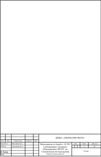 Введение 1 Геологическая часть 1.1 Общие сведения о месторождении 1.2 Стратиграфия 1.3 Тектоника 1.4 Нефтегазоносность 2 Техническая часть 2.1 Общие сведения о методах борьбы с АСПО 2.2 Характеристика используемого оборудования 2.3 Анализ проводимых мероприятий борьбы с АСПО на Степановском месторождении 2.4 Специальный вопрос. Анализ добывных возможностей скважин и технологических режимов 3 Организационная часть 3.1 Охрана недр и окружающей среды 3.2 Охрана труда и техника безопасности 3.3 Противопожарные мероприятия Заключение Список использованной литературы |