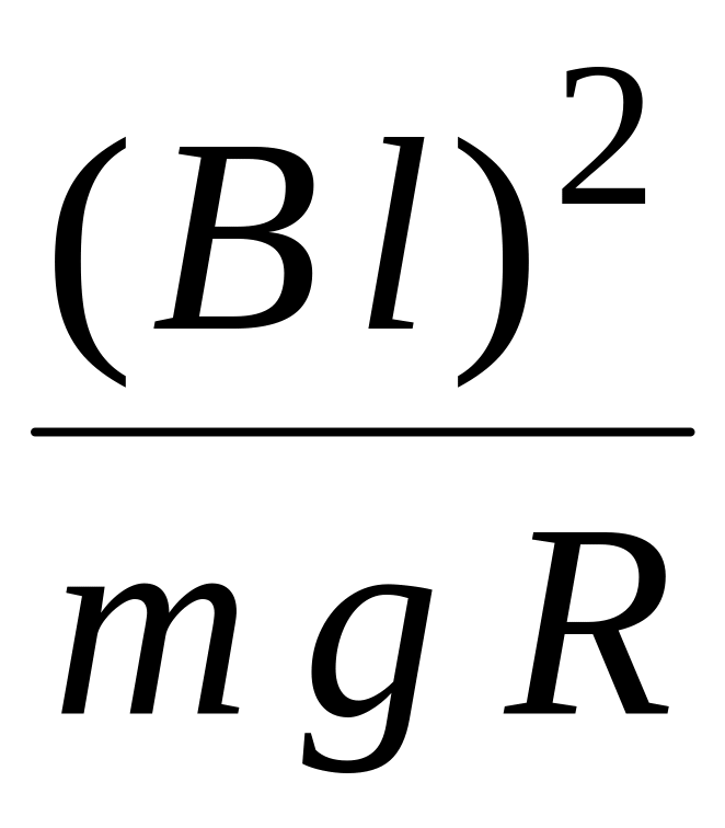 16. По двум вертикальным рельсам, верхние концы которых замкнуты резистором сопротивлением R, начинает скользить проводящая перемычка массой m и длиной l. Система находится в магнитном поле. Вектор индукции перпендикулярен плоскости, в которой расположены рельсы. Сила трения пренебрежимо мала. Установившаяся скорость движения перемычки равна