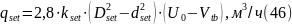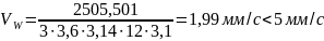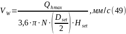 Vtb – турбулентная составляющая скорости рабочего потока, зависящая от продольной скорости потока. Принимается в зависимости от скорости рабочего потока по таблицам 31 и 32 [1]. При VW=5 мм/с Vtb=0 мм/с;