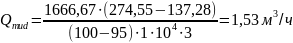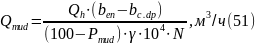где Pmud – влажность осадка. При самотечном удалении Pmud=95%;