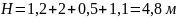 hс – превышение строительной высоты над расчётным уровнем воды, принимается не менее 0,5 м;