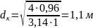 Vк – скорость, равная 1,0 – 1,2 м/с.