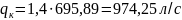 q=1,4∙qmax w=1,4∙695,89=974,25 л/с.