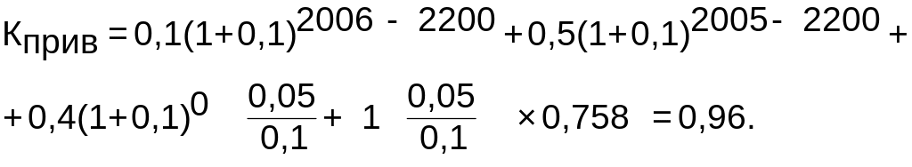 Поправка на умови платежу. Оскільки|тому що| у|в,біля| конкурента складна форма розрахунку, то використовуємо формулу (5.6):