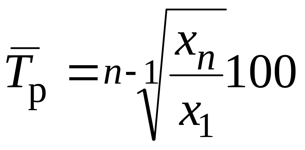 – рассчитывается, как геометрическая средняя из значений цепных темпов роста уровней ряда;