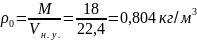 На основании закона Авогадро можно определить плотность газа при нормальных условиях (0), т.е. при Т0=00С и давлении в Р0=1,033 атм: