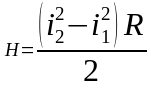 превышение второй (правой) точки с уклоном i2 над первой (левой) точкой с уклоном i1 равно половине произведения разности квадратов уклонов правой и левой точек на радиус