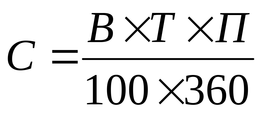 Учетный процент удерживается банком из суммы векселя сразу же в момент его учета (покупки). Его величина определяется по формуле
