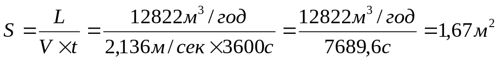 5. Визначаємо загальну площу перетину витяжних шахт, котра забезпечить розрахунковий об'єм вентиляції (повітрообмін). Розрахунок ведеться за формулою: