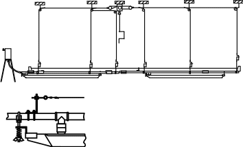 1 –пружина; 2 – тройник; 3 – гайка; 4 – желоб; 5 – рукав; 6 – подставка; 7 – кран; 8 – рукав; 9 – бак напорный ; 10 – подвесной канат; 11 – крайний блок; 12 – лебедка 13 – труба; 14 –коловорот; 15 – продольный канат; 16 – блок поворотный.