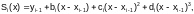 S'(xi–0) = bi + 2сhi + 3dihi2,