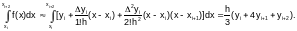 В пределах отрезка [xi;xi+2], на котором подынтегральная функция аппроксимирована многочленом (6.4.4-1), получим приближенную формулу Симпсона: