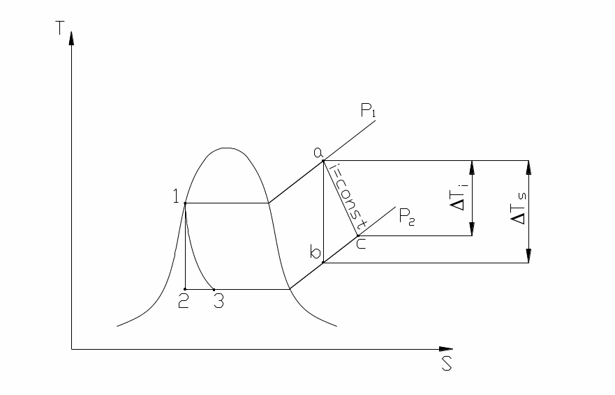 Таким образом, процесс адиабатного расширения с получением внешней работы термодинамически более эффективен, чем процесс адиабатного дросселирования. Это видно из диаграммы (процесс а – с - дросселирование).