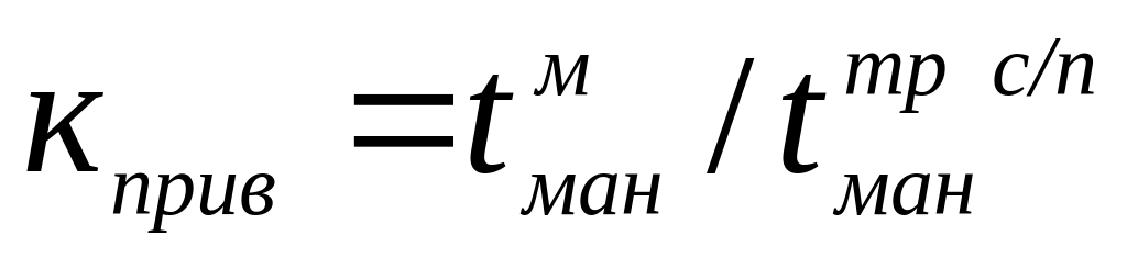 где кприв – коэффициент приведения местных вагонов по затратам маневровых средств к транзитным с переработкой.