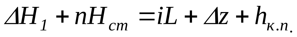 где р1 и р2 – соответственно давление в начальном и конечном пункте нефтепровода; Нст – потери напора на нефтеперекачивающей станции; hт – потеря напора на трение в магистрали (i∙L) и в коммуникациях (n∙Нст) всех n перекачивающих станций; – удельный вес нефти.