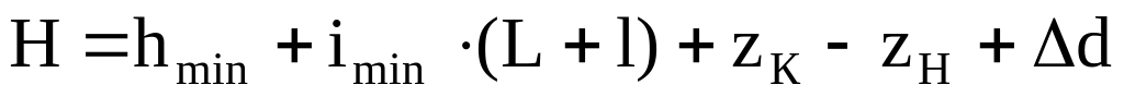 Минимально допустимая глубина уличной сети в начальной точке H, м определяется по формуле [6]