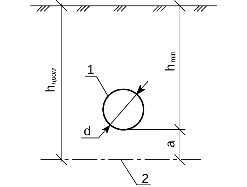 Рисунок 2.2 Схема глубины заложения трубопровода