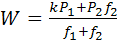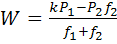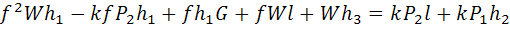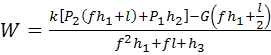 ∑Fx=0; kP1 – f1W – (W-P2)f2= 0;