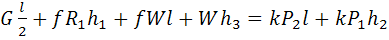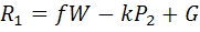∑Fz=0; R1 + kP1 – G – fW = 0;