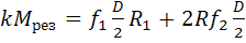 Под действием сил резания Р1 и Р2 заготовка стремится повернуться против часовой стрелки вокруг точки О. При этом возникают: реакция R1, сила трения f R1, сила трения f W. Повороту будут препятствовать моменты сил от: силы трения f R1 (плечо h1), силы трения f W (плечо l) и зажимной силы W (плечо h3).