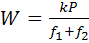 Тогда kP – f1W – f2W = 0;