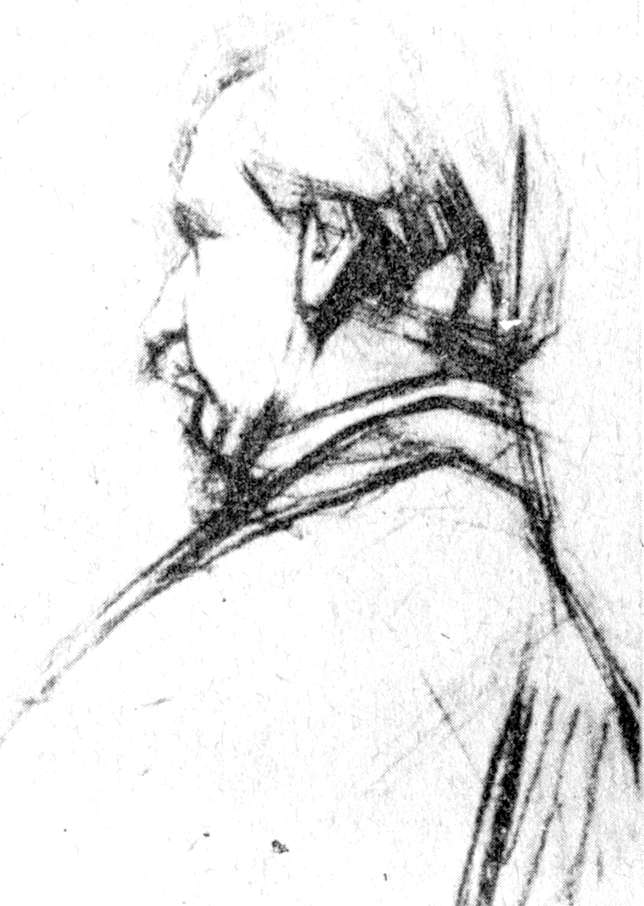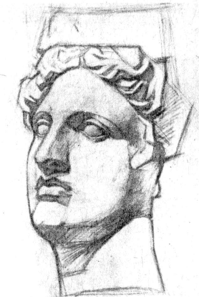 — Оттого, что это более тонко обработано, тут больше любви к делу; вы старались от души передать, что видели, увлекались бессознательно многими тонкостями натуры, и вышло удивительно верно и интересно. Делали, как видели, и вышло оригинально. Тут нет ни сочных планчиков, ни академической условной прокладки, избитых колеров. А как верно уходит эта световая щека, сколько тела чувствуется на виске, на лбу, в мелких складках! А потом глаза,— в академии так не рисуют их и не считают нужным так их заканчивать — очень серьезно и строго обработаны глаза. Краски тоже, все это просто у вас, а близко, очень близко к натуре. В академических ваших работа вы впадаете в общий шаблонный прием условных бликов и ловких штрихов, которых, я уверен, вы в натуре, на гипсе, не видите»150[55].