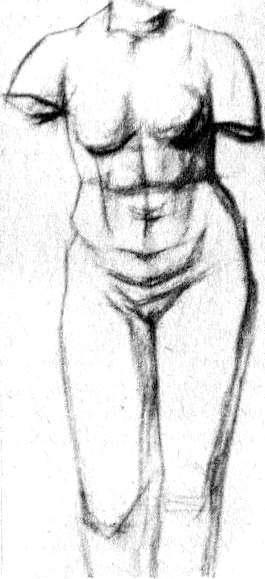 Чтобы помочь ученику овладеть всем этим и необходимыми знаниями и навыками, вначале ему надо давать для рисования натуру с ярко выраженным анатомическим строением. «Торс Геркулеса Бельведерского, Лаокоон, Германик и Боец были у него главными статуями для ученика; Антиноя, Аполлона, Венеру и других, с формами более округленными и менее заметными уклонениями линий, советовал изучать позже, оттого что в них более скрыта анатомия»103[8].