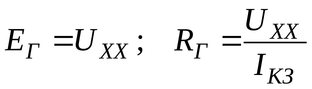 Эквивалентная ЭДС равна напряжению на зажимах ab при разомкнутой ветви RН, т.е. напряжению холостого хода UXX.
