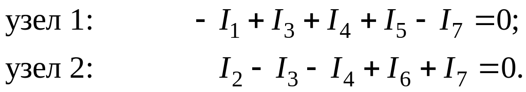 Запишем уравнения по первому закону Кирхгофа, предварительно выбрав направления токов в ветвях: